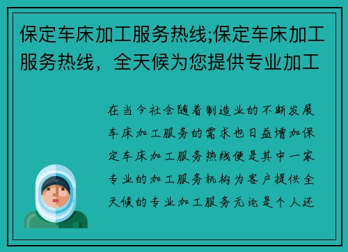 宝鸡车床销售部电话—专业服务,让您的车床选择更轻松!黄金城集团 在工业制造领域,车床是不可或缺的重要设备。宝鸡车床销售部电话将为您提供一站式的专业服务,让您的车床选择更轻松、更省心! 我们的销售部电话不仅仅是一个电话号码,而是连接您与高品质车床的桥梁。我们的团队由一群经验丰富、技术过硬的销售人员组成,他们将全程为您提供专业的指导...